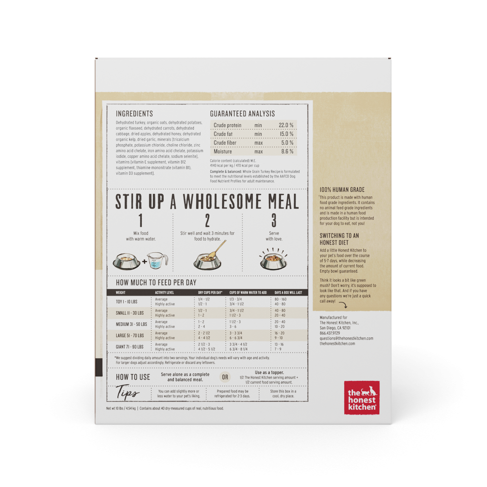 The Honest Kitchen Whole Grain Turkey Recipe Dehydrated Dog Food