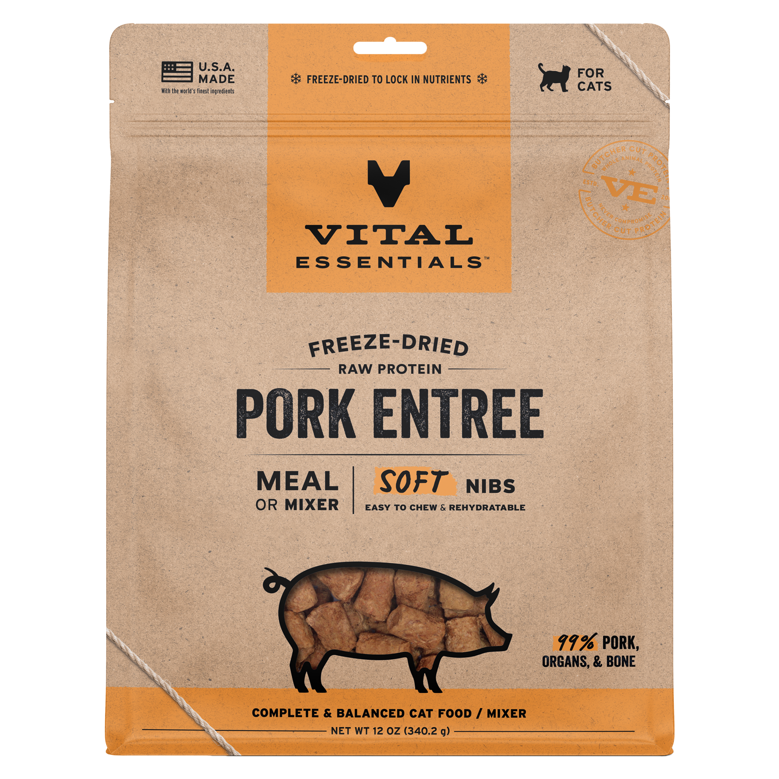 Vital Essentials Freeze Dried Pork Soft Nibs Cat Food